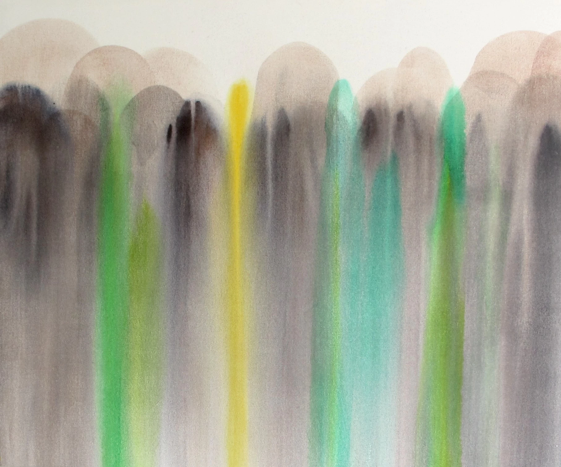 透明度が高い画材で何層にも描き、なんとも言われぬ奥行き感を醸し出している。