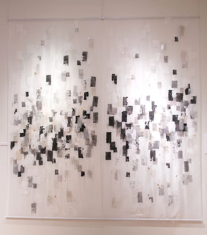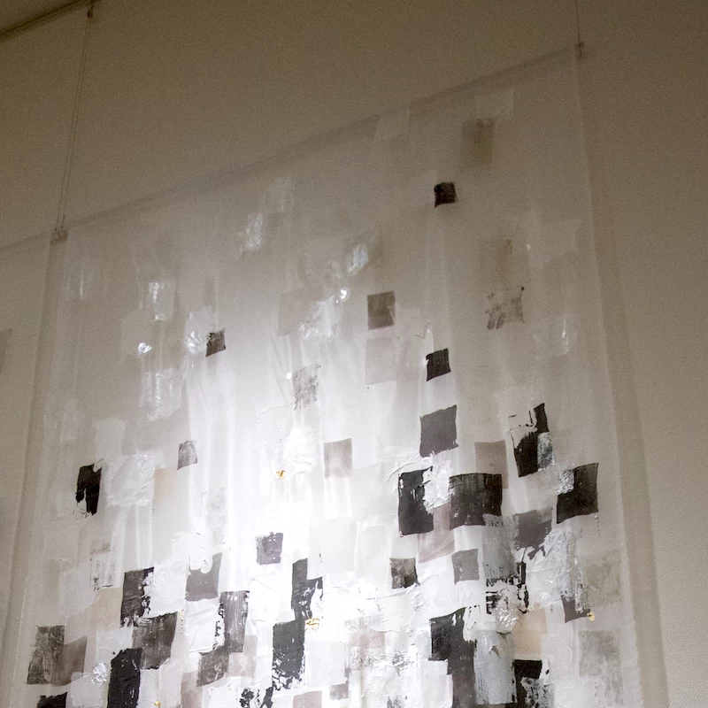 木どっことは、作品を壁面に安定して取り付けるための木製の仕込みで、紐と違って前に傾く(お辞儀する)ことがなく、美しい展示が可能です。