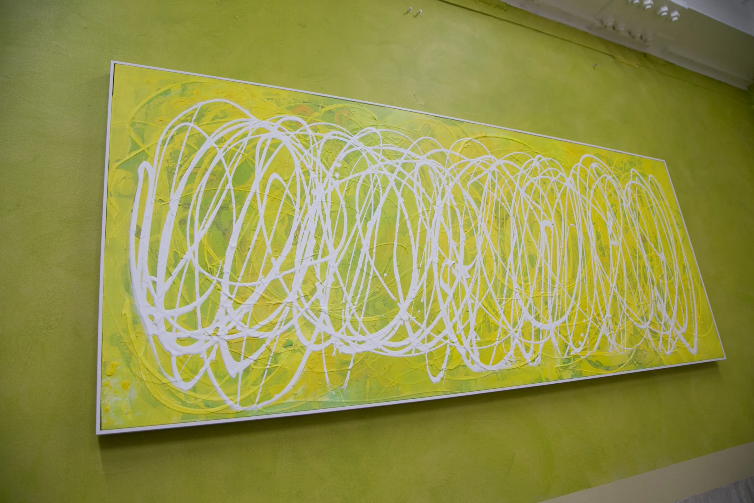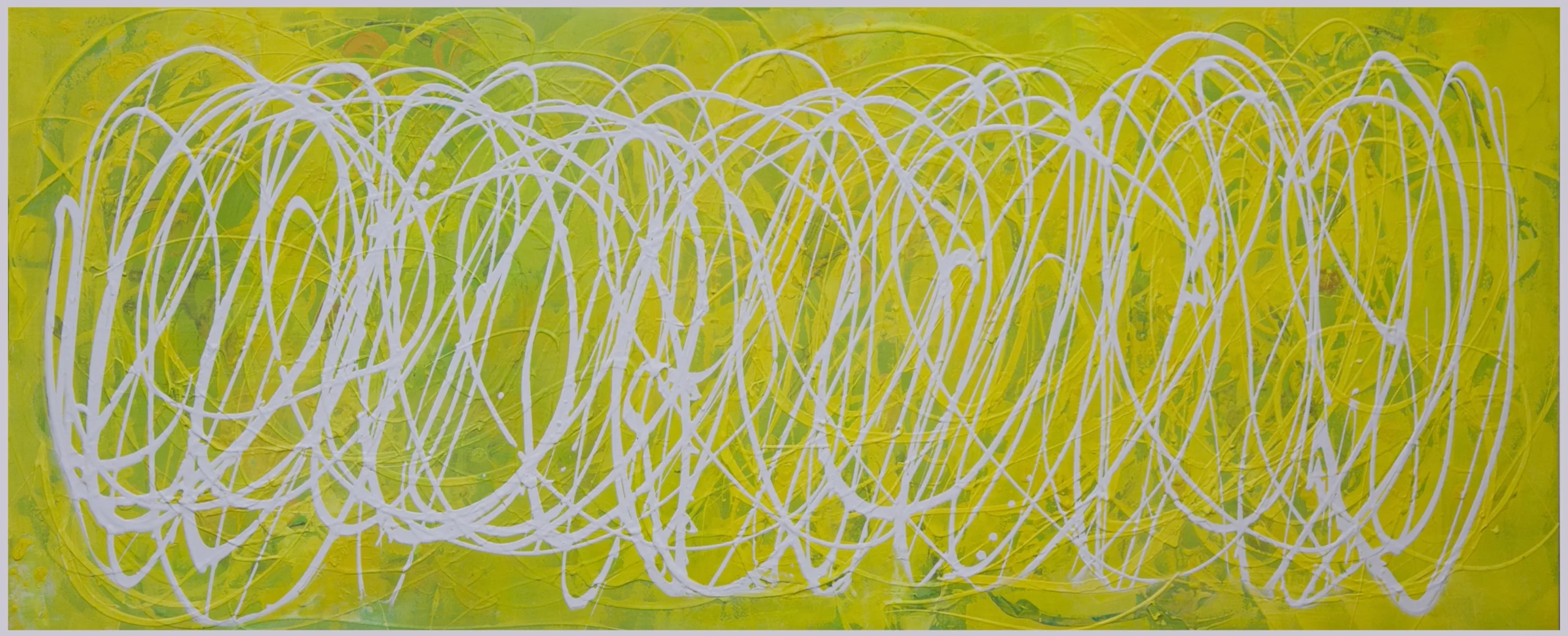 チューブから直接出した絵具で、立体感や躍動感のあるラインを描いている。