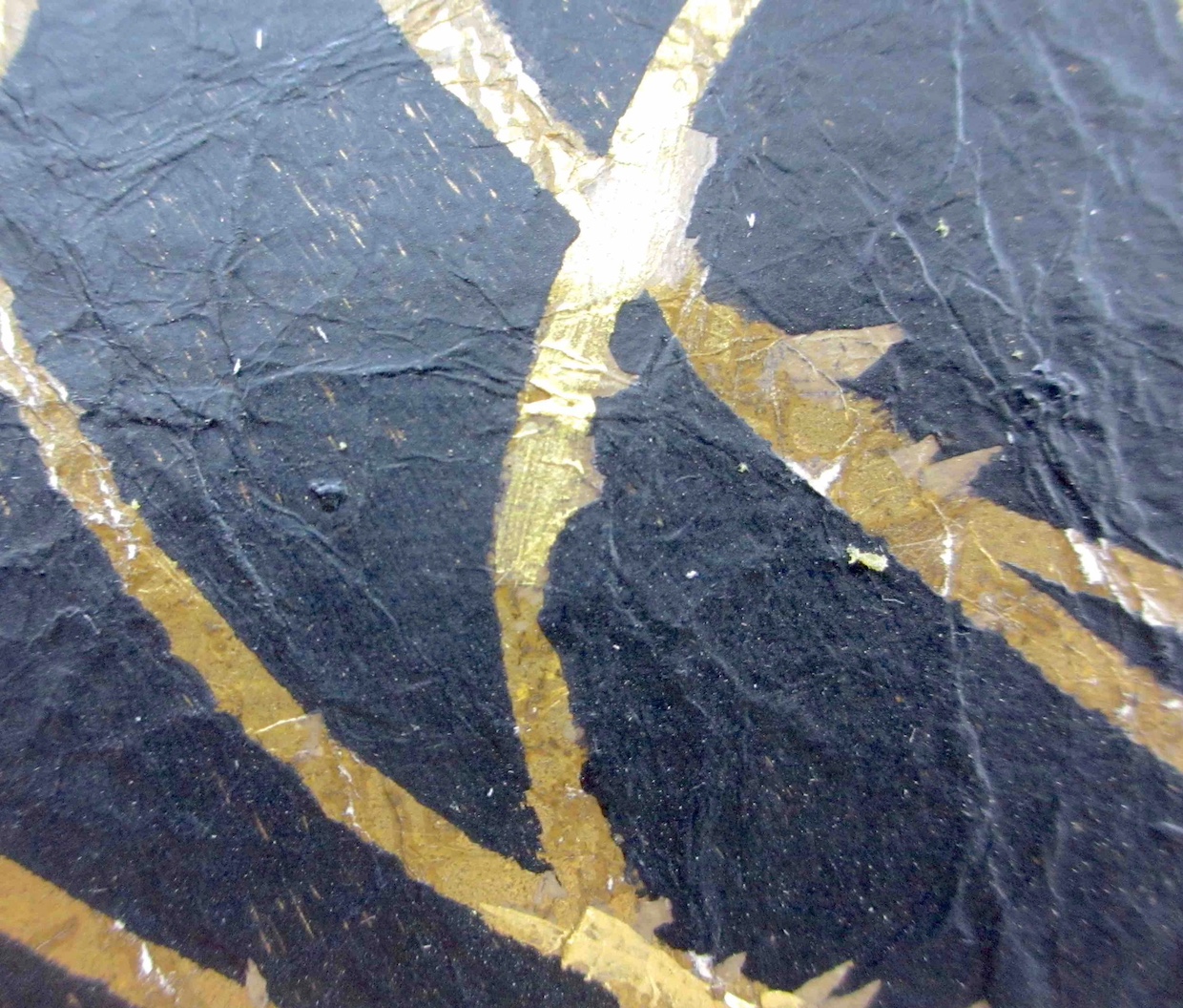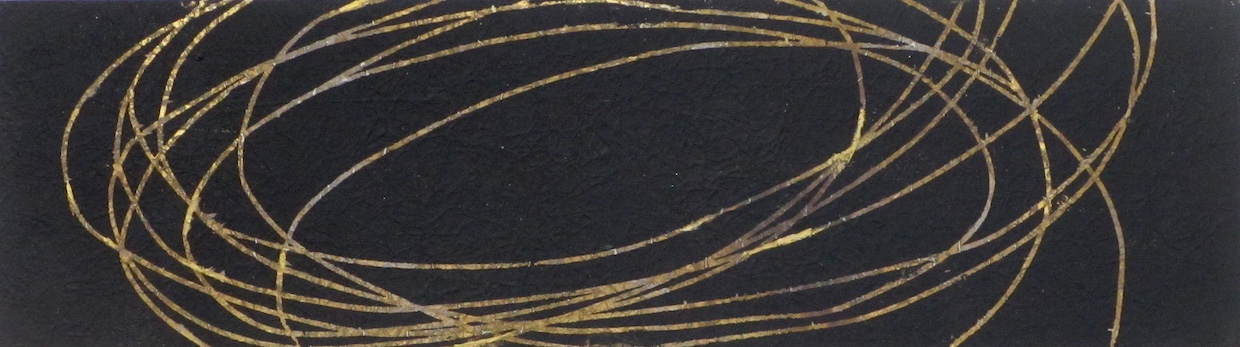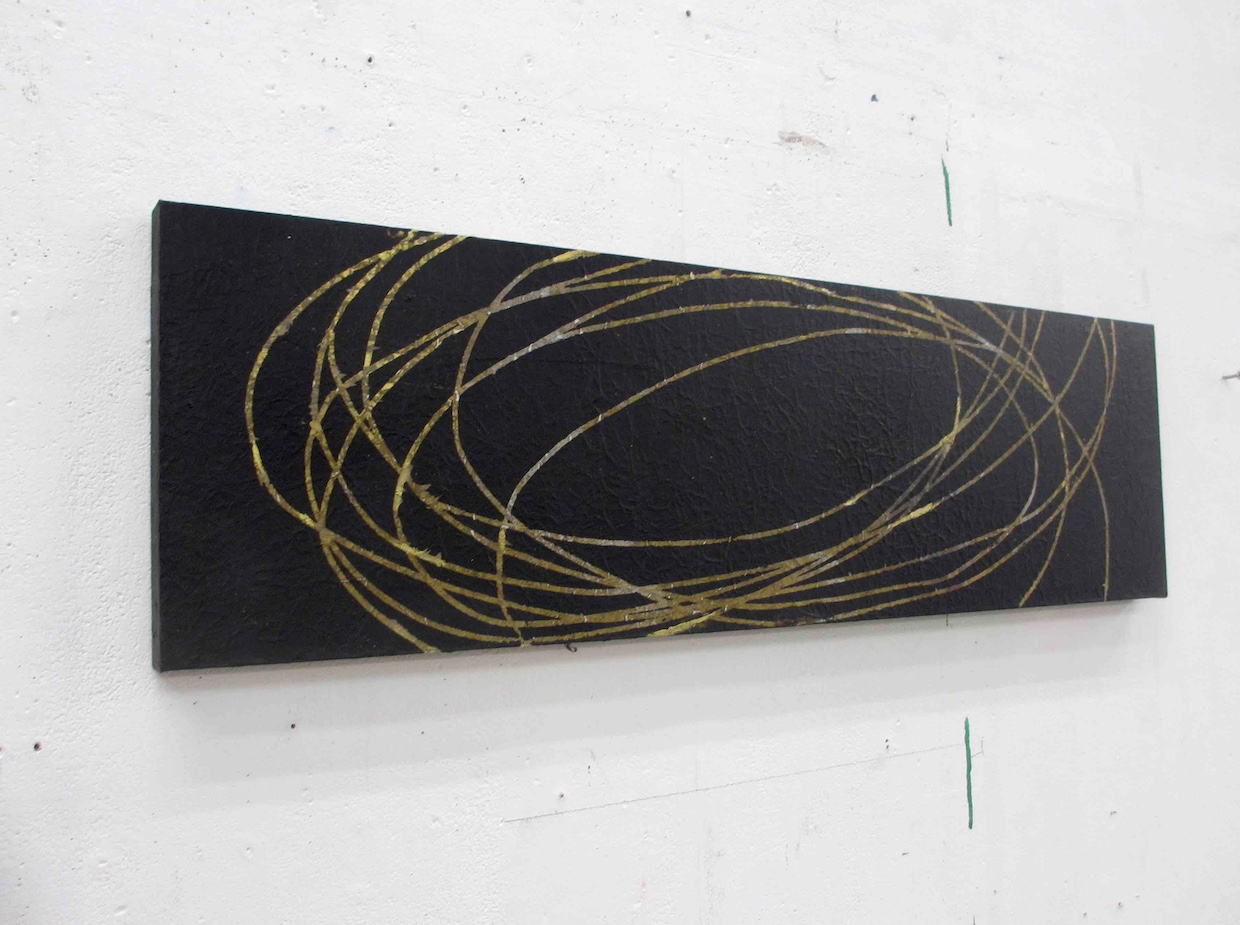 もみ金箔の上に墨色で深い宇宙を表現。
