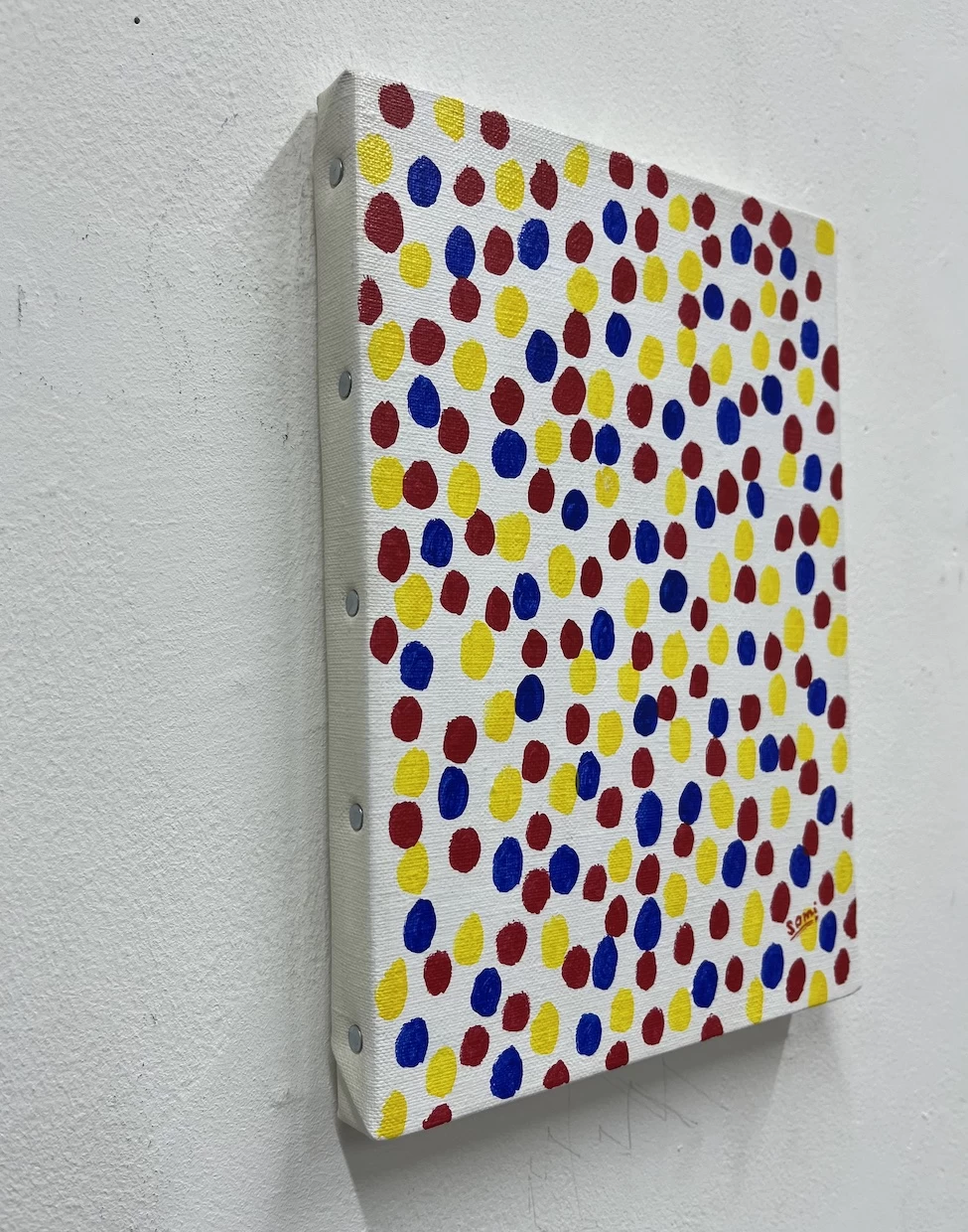 木どっことは、作品を壁面に安定して取り付けるための木製の仕込みで、紐と違って前に傾く(お辞儀する)ことがなく、美しい展示が可能です。