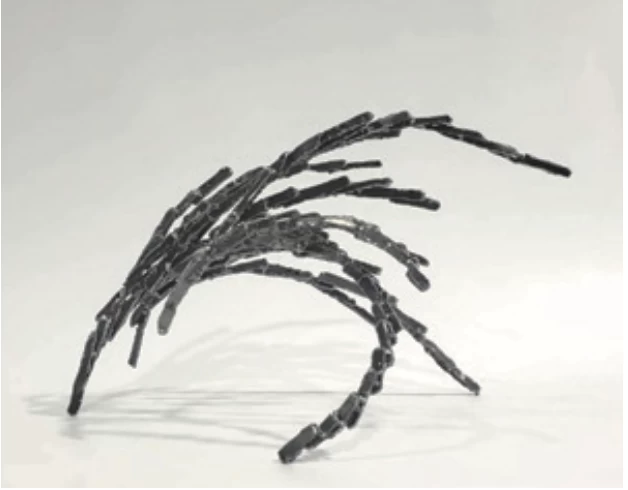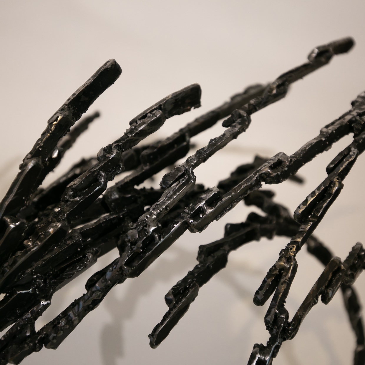 鉄のフラットバーを溶断で細い棒状に切り取り、そして形作ったもので、