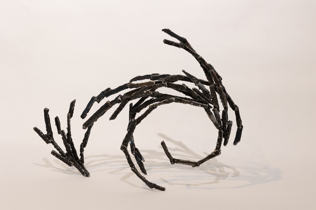 鉄のフラットバーを溶断で細い棒状に切り取り、そして形作ったもので、