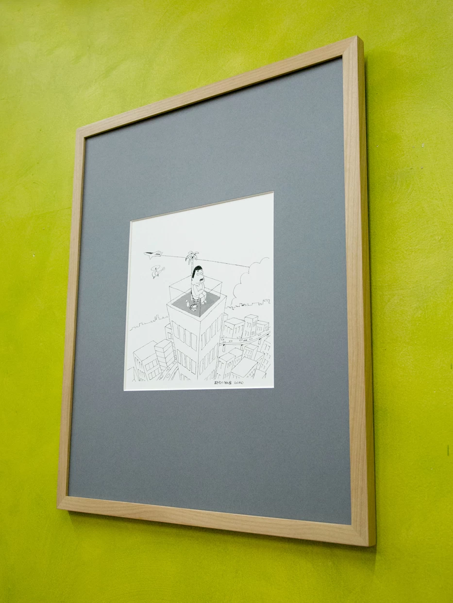 木どっことは、作品を壁面に安定して取り付けるための木製の仕込みで、紐と違って前に傾く(お辞儀する)ことがなく、美しい展示が可能です。