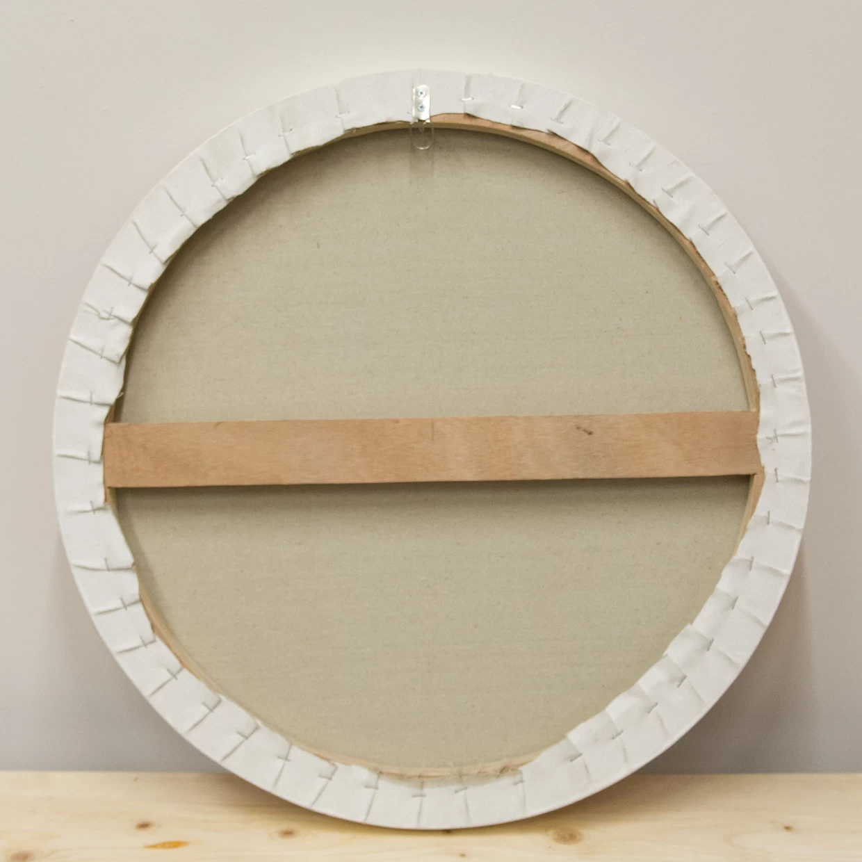 木どっことは、作品を壁面に安定して取り付けるための木製の仕込みで、紐と違って前に傾く(お辞儀する)ことがなく、美しい展示が可能です。