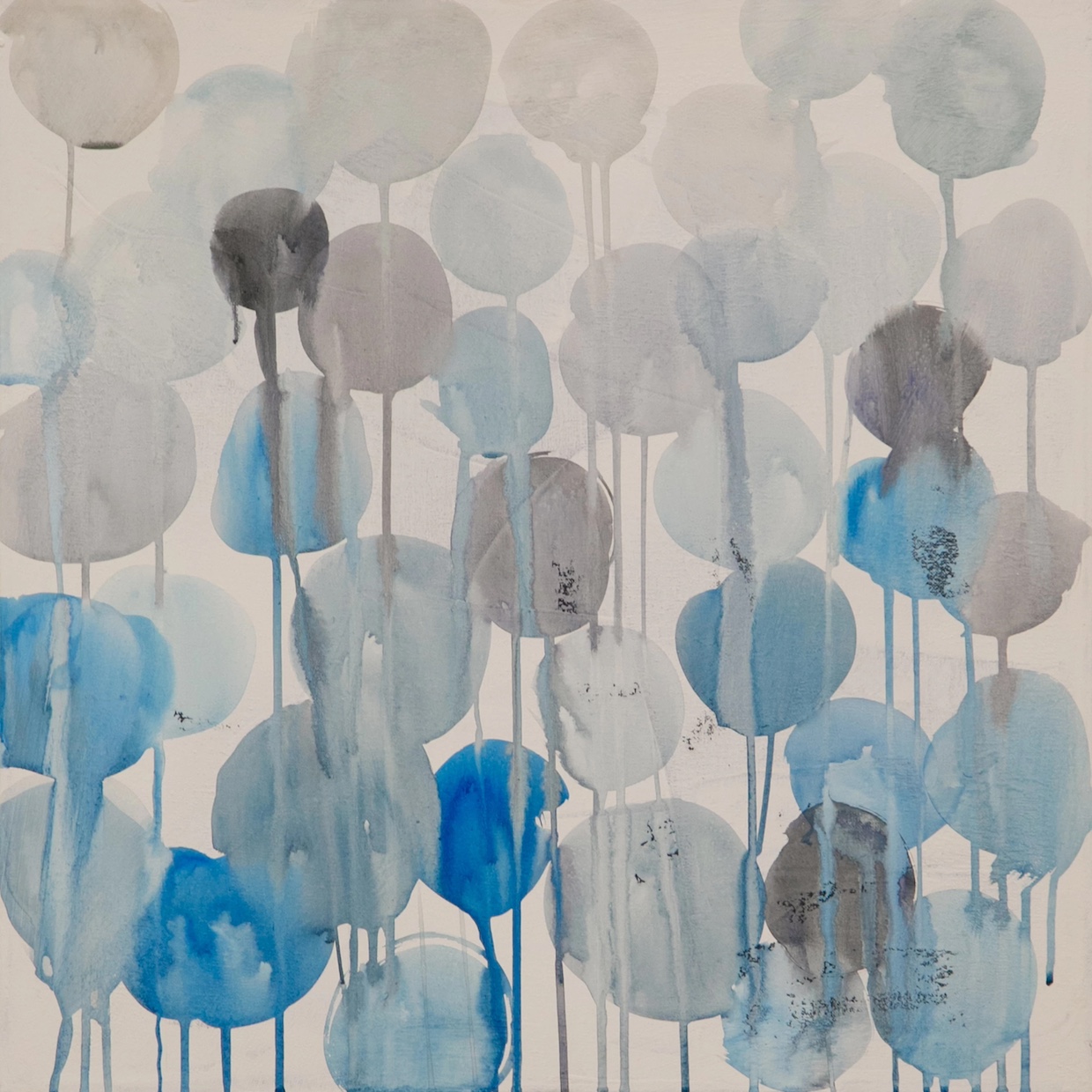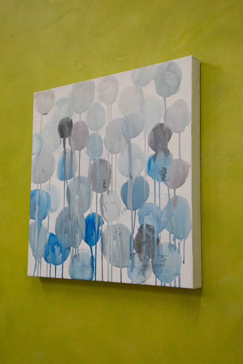 絵具の量、粘度、色、キャンバスなど…塗面によっても、微妙に変化する流れ方、スピード、その形。