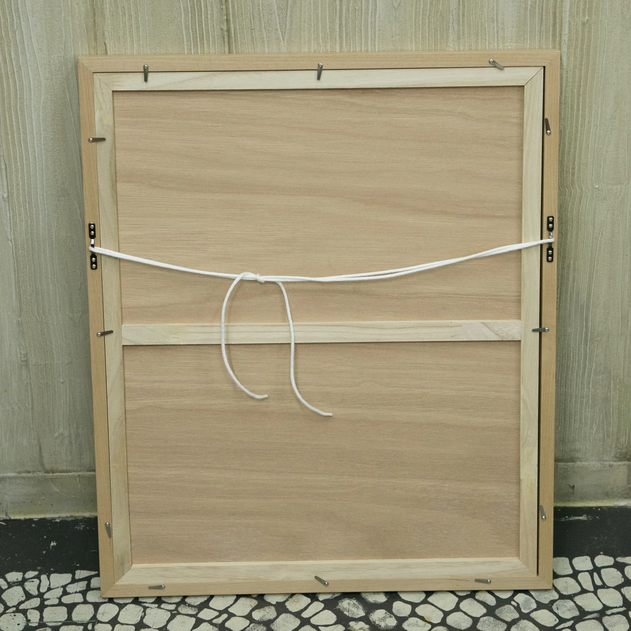 木どっことは、作品を壁面に安定して取り付けるための木製の仕込みで、紐と違って前に傾く(お辞儀する)ことがなく、美しい展示が可能です。