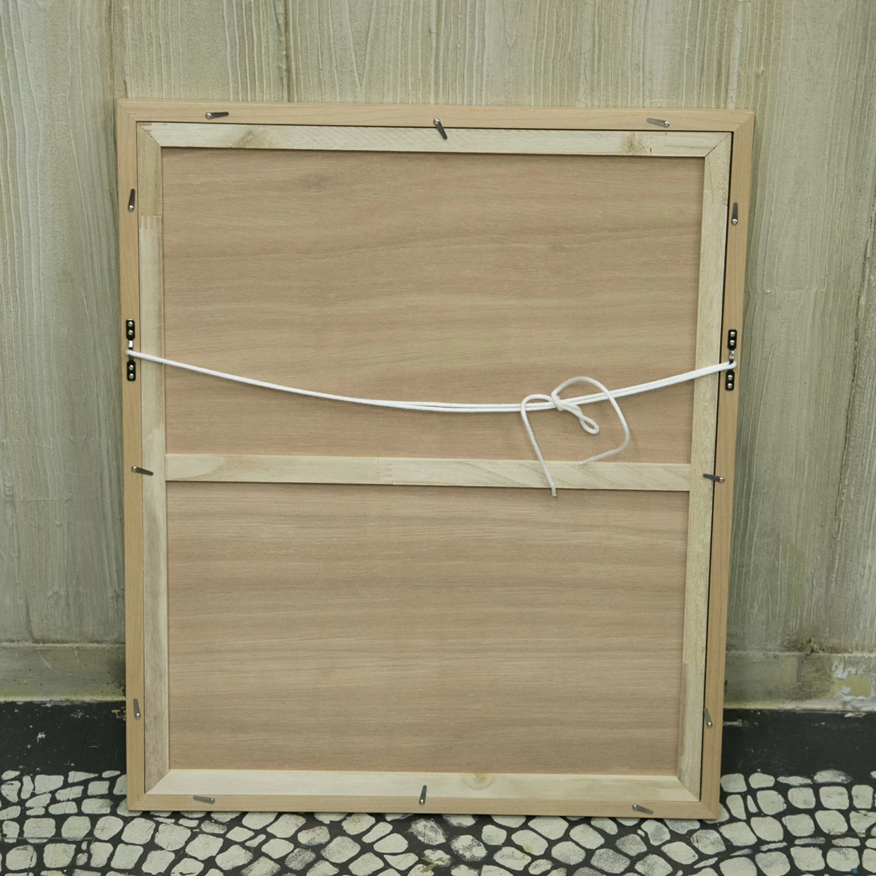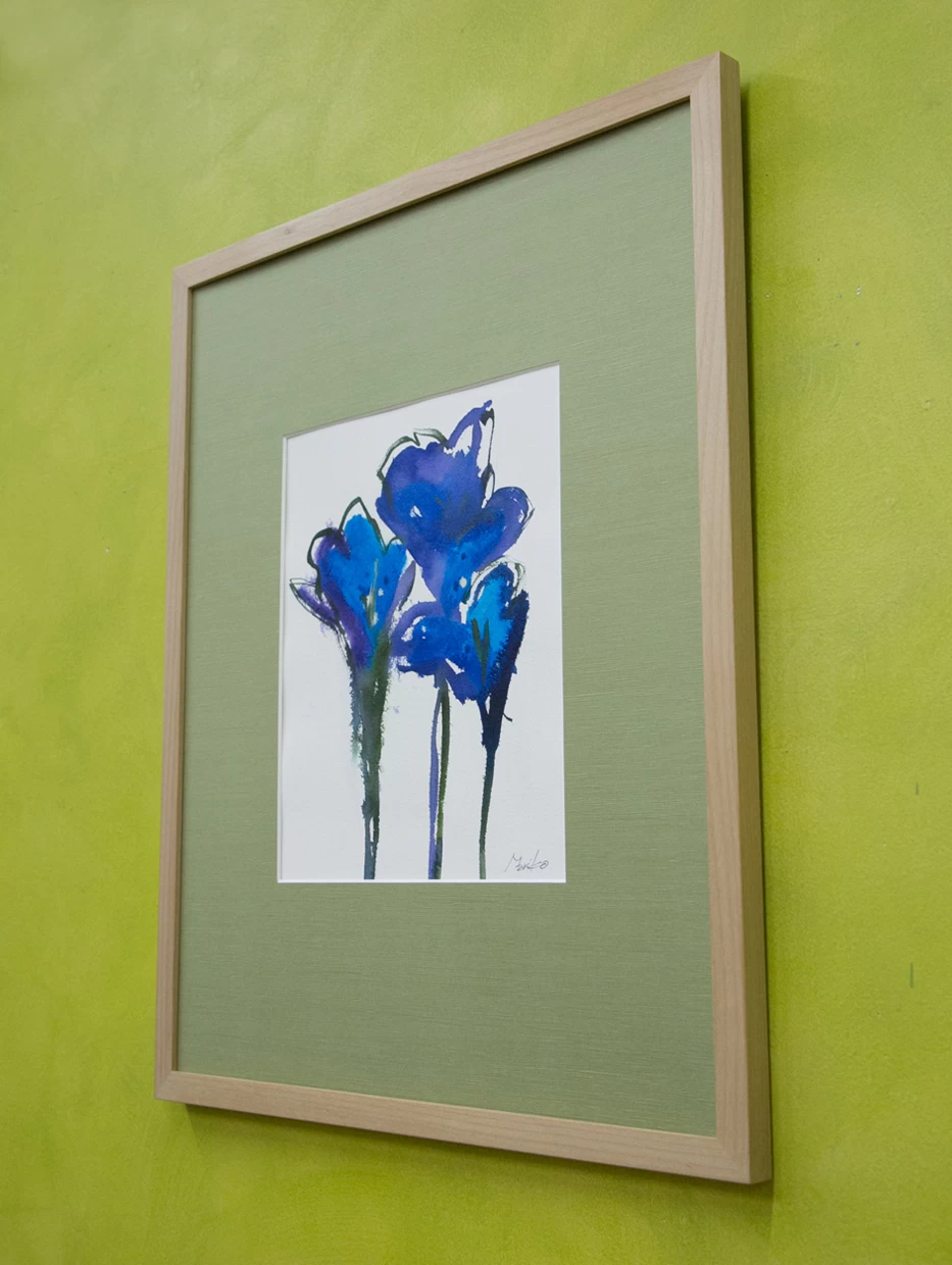 木どっことは、作品を壁面に安定して取り付けるための木製の仕込みで、紐と違って前に傾く(お辞儀する)ことがなく、美しい展示が可能です。