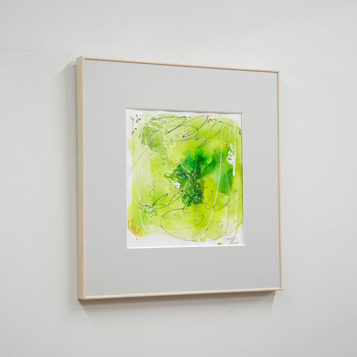 木どっことは、作品を壁面に安定して取り付けるための木製の仕込みで、紐と違って前に傾く(お辞儀する)ことがなく、美しい展示が可能です。